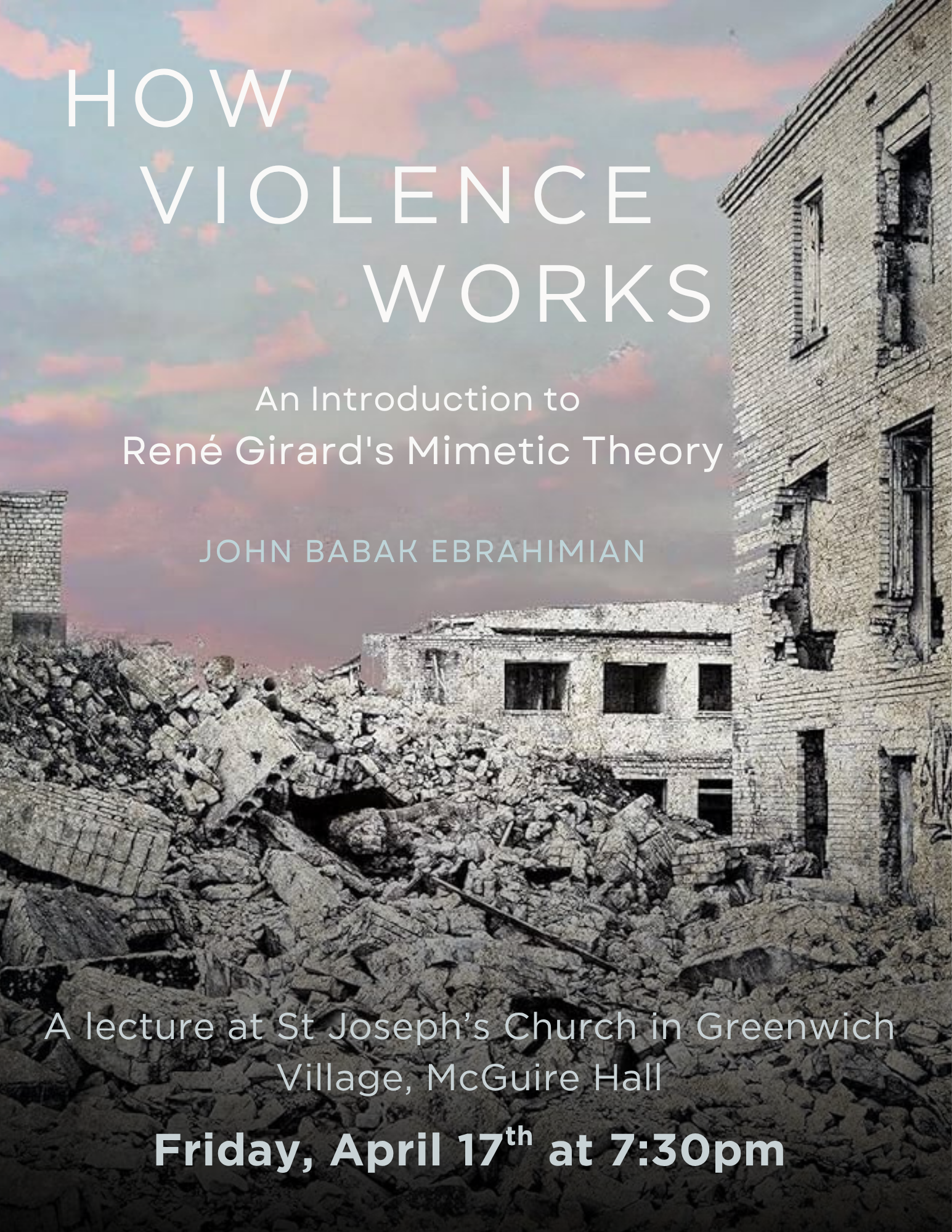 John Babak Ebrahimian, PhD, who studied under René Girard, will present on Girard’s understanding of the origins of human violence, how the Bible exposes the scapegoat mechanism, and how Jesus’ Passion reveals and overturns it once and for all.