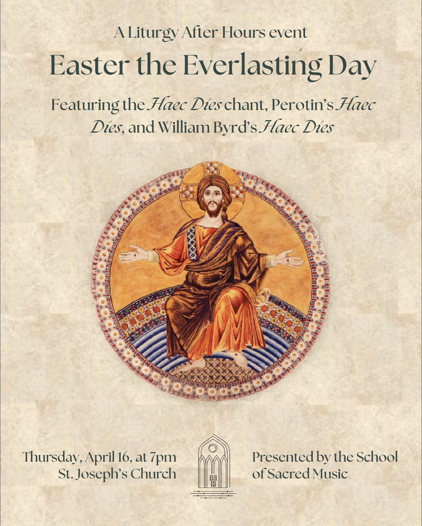 This evening explores the radiance of the Resurrection through the Haec Dies chant, Perotin's Haec Dies, and William Byrd's Haec Dies.