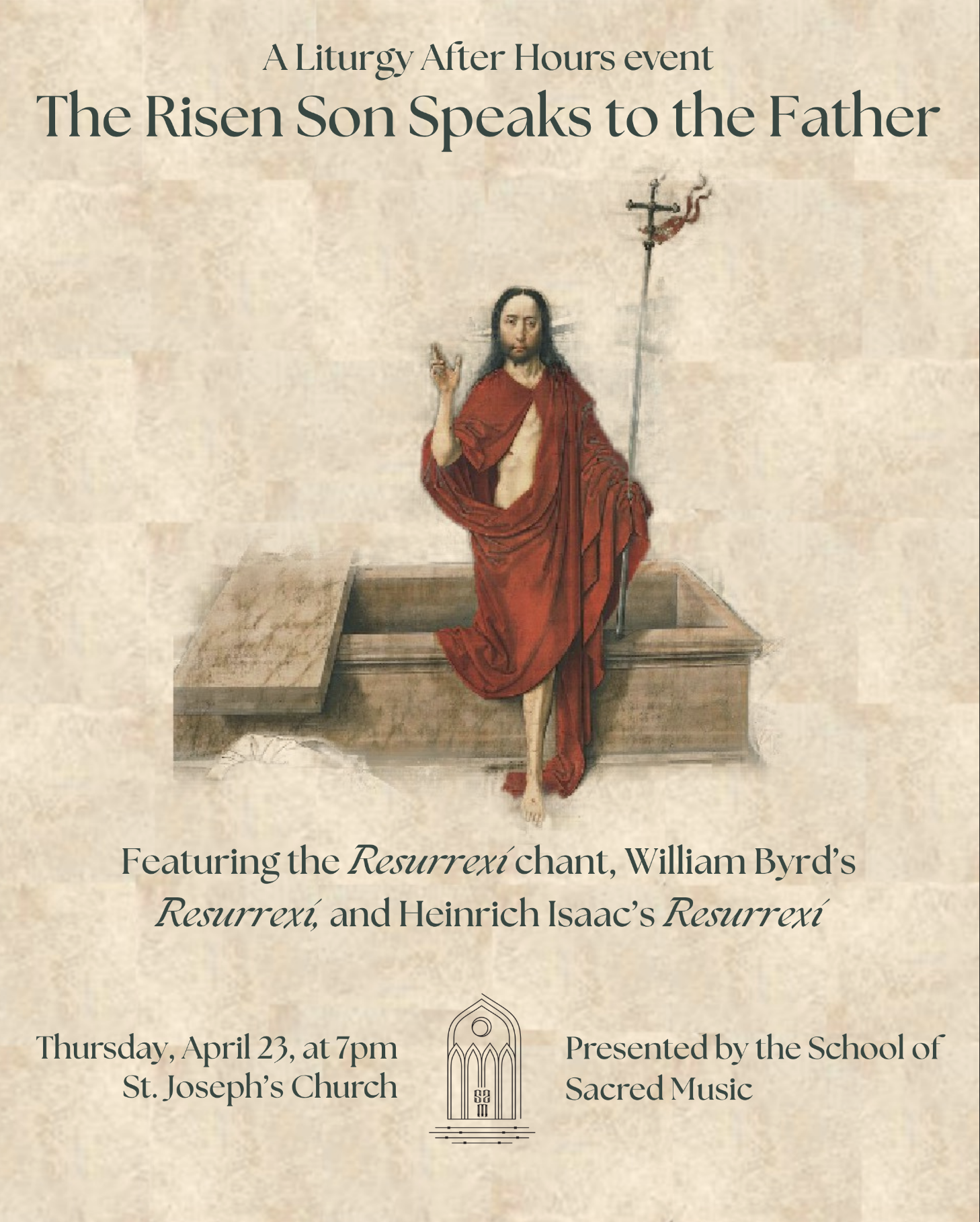 A profound and moving evening built around the Resurrexi, the introit in which the Risen Christ speaks.