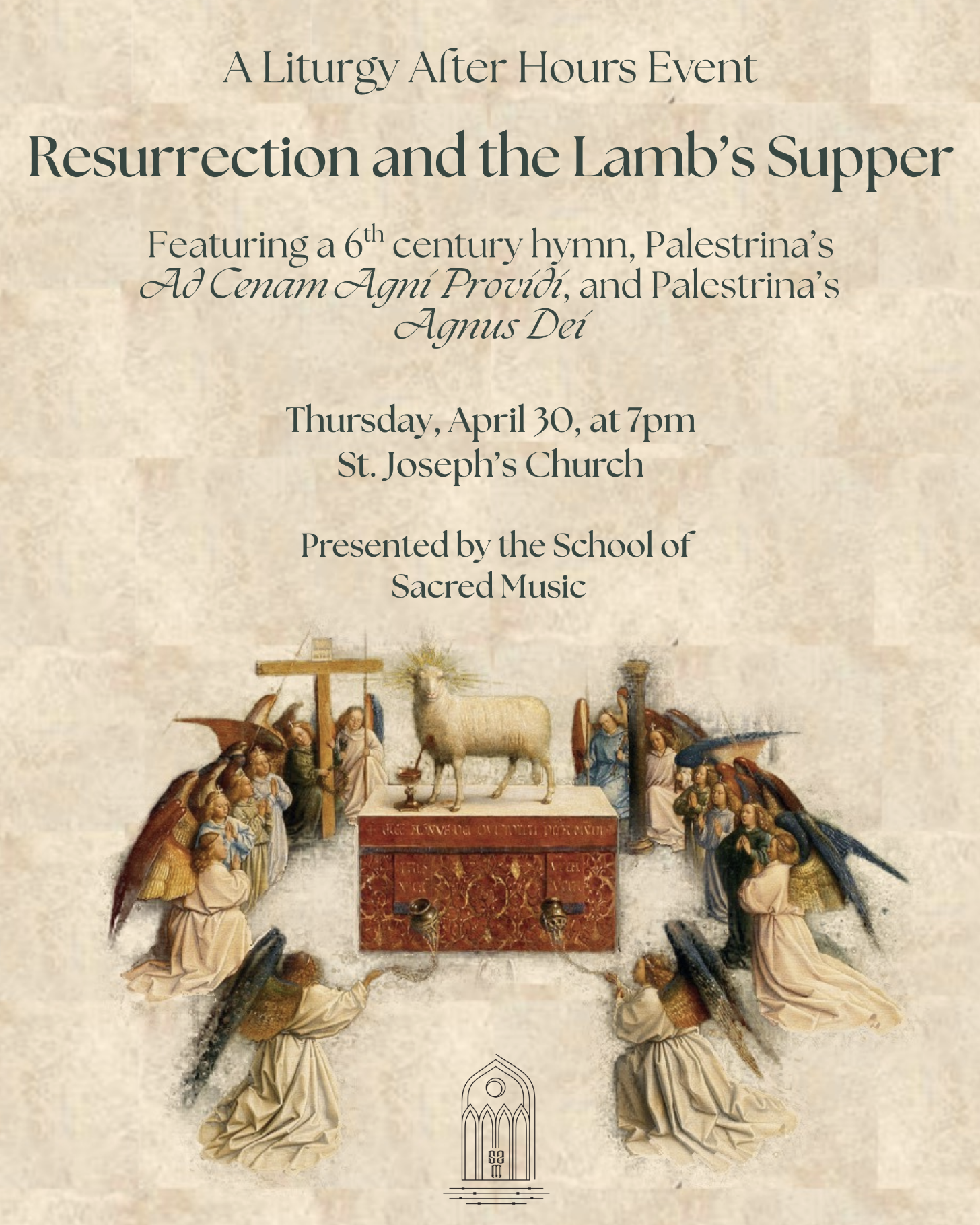 We close the series with a 6th century hymn, Palestrina's Ad Cenam Agni Providi, and Palestrina's Agnus Dei.
